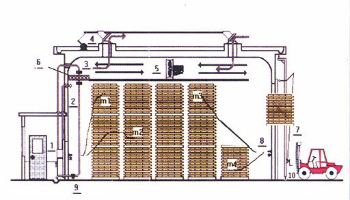 干燥窯是以蒸汽為熱源,濕空氣為介質(zhì),通過控制干燥介質(zhì)的參數(shù)科學(xué)的對木材進(jìn)行干燥處理。采用蒸汽加熱可實(shí)現(xiàn)的窯內(nèi)溫、濕度控制從而獲得干燥質(zhì)量好、含水率均勻的木材干燥產(chǎn)品。